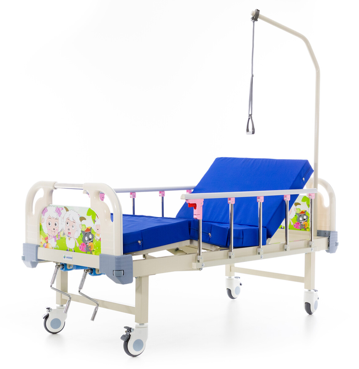 A mechanikus pozicionáló ágy gyerekeknek ötvözi a szabványos kórházi ágy funkcióit és biztonságát a játékos, színes dizájnnal, amely kellemesebbé teszi a kis betegek számára az ágyban töltött időt. Alkalmazható egészségügyi intézményekben, valamint otthoni ápolás során is.