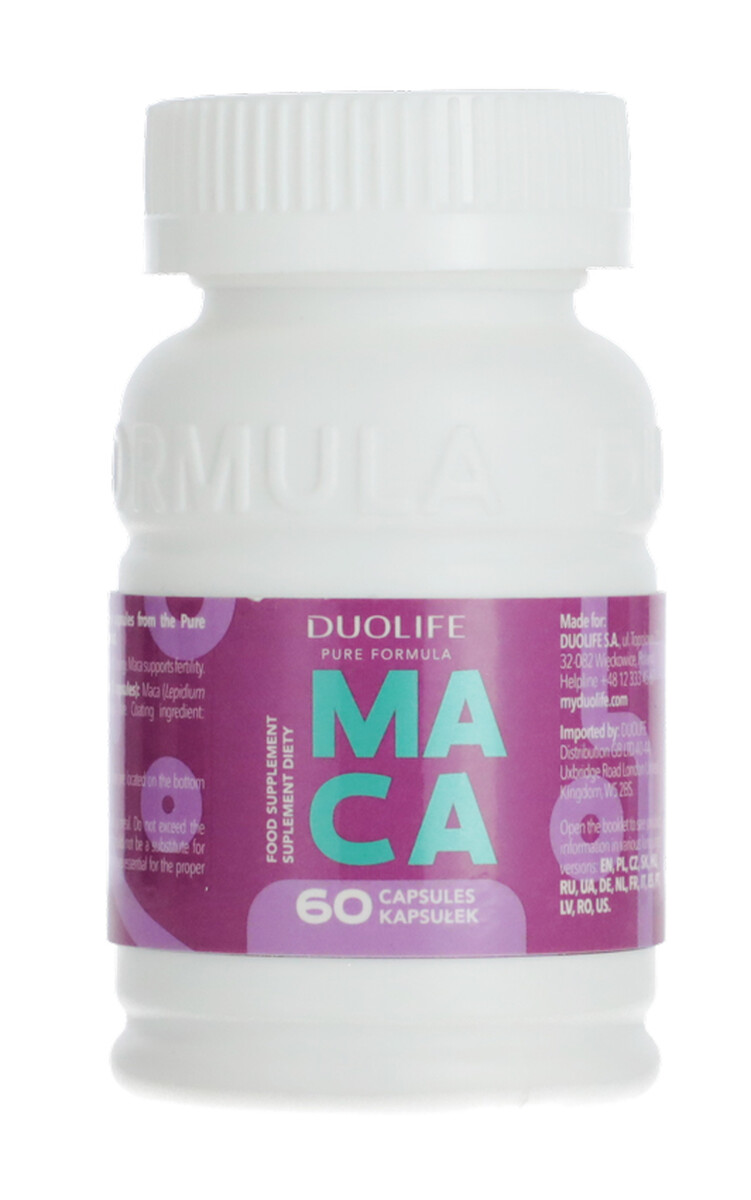 A DUOLIFE Maca étrend-kiegészítő a Pure Formula termékcsalád része, amely a tiszta természet erejét kínálja koncentrált formában. Fő összetevője a perui zsázsa gyökeréből (Lepidium meyenii) készült kivonat, amelyet adaptogén tulajdonságai és a szervezet komplex támogatása miatt nagyra értékelnek.