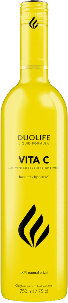 A DUOLIFE Vita C egy folyékony étrend-kiegészítő, amely gondosan válogatott, természetes eredetű összetevőkből készült. Gyümölcslevek és értékes növényi kivonatok kombinációját tartalmazza, például acerola-, csipkebogyó- és camu-camu bogyó kivonatot, amelyek energiával látják el a szervezetet, és támogatják annak természetes védekezőképességét.