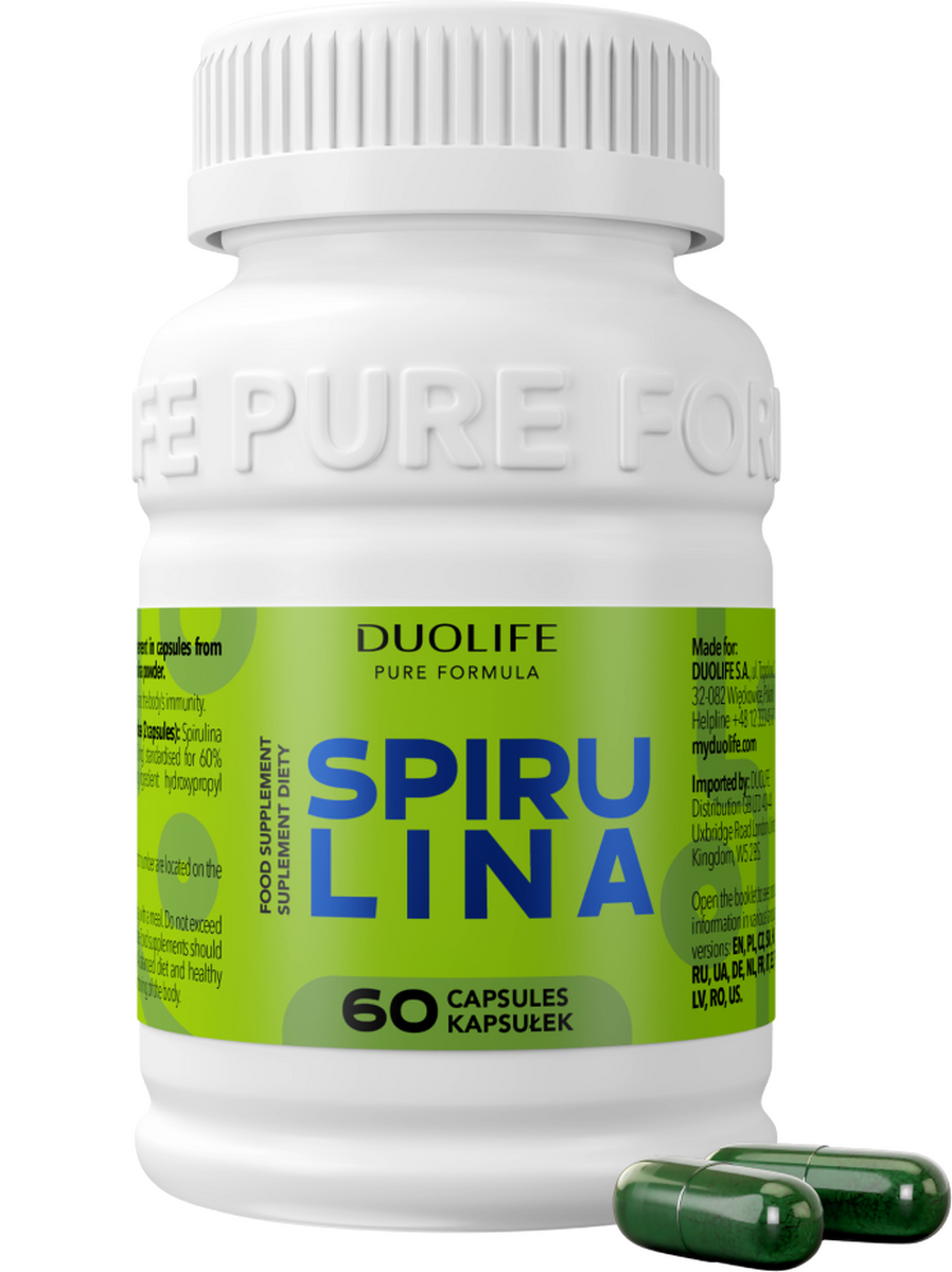 A DuoLife Spirulina étrend-kiegészítő nem tartalmaz mesterséges tartósítószereket, töltőanyagokat vagy GMO-t. A késleltetett felszívódású kapszulák biztosítják a hatóanyagok fokozatos felszabadulását, így kímélik az emésztőrendszert.