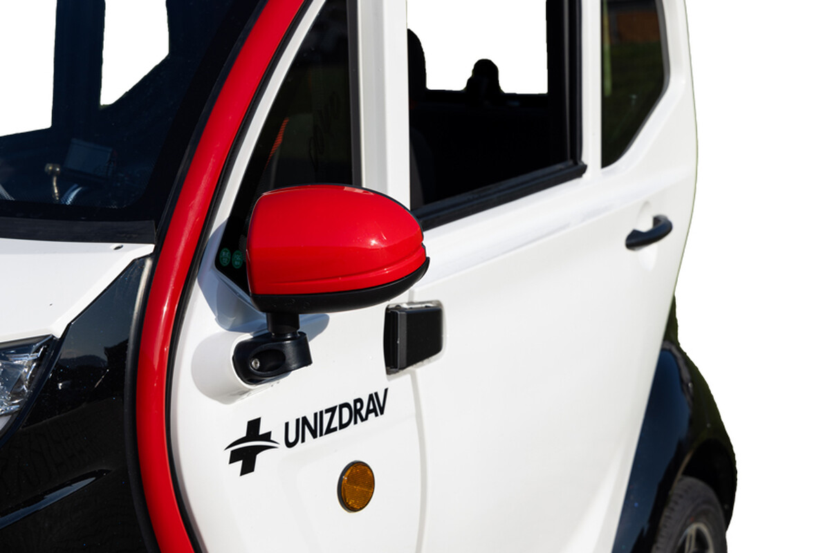 Az UNIZDRAV MiniCar elektromos háromkerekű robogó egyesíti a tricikli ügyességét, a biztonságos mobilitást és a teljesen felszerelt, fedett utastér kényelmét alacsony szállítási költségekkel. Egyszerű kormányozhatóságának és kompakt méreteinek köszönhetően sokkal könnyebben manőverezhet vele a gyakran zsúfolt városokban vagy szűk utcákban.