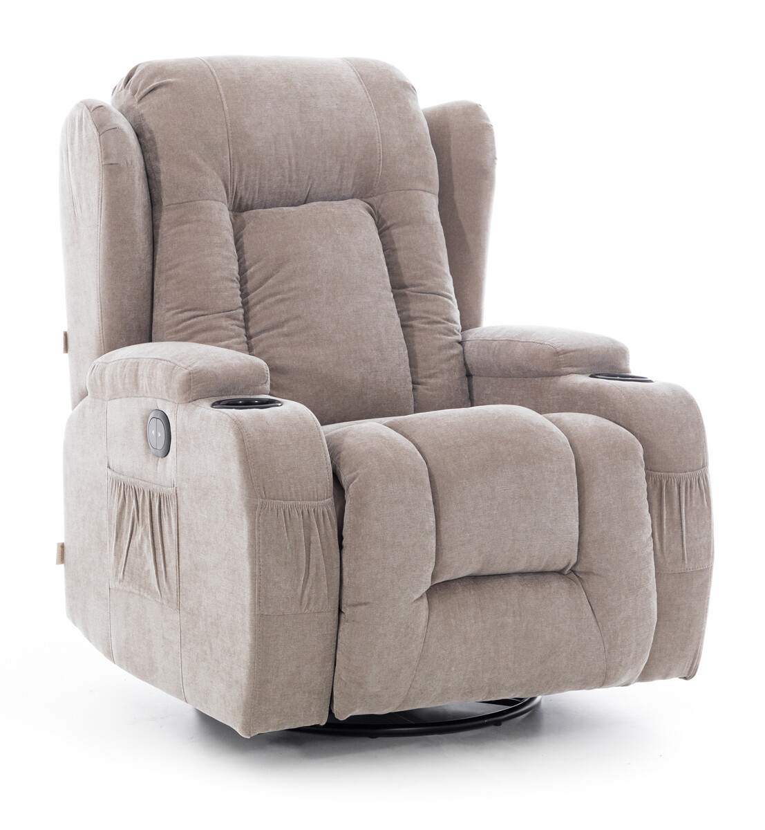 A pihentető, állítható fotel tervezésekor a tárolóhelyekre is gondoltak. A háttámlák mindkét oldalán műanyag ital tartólyukak találhatók, alul pedig további 4 zseb a távirányítók és egyéb apróságok elhelyezésére.