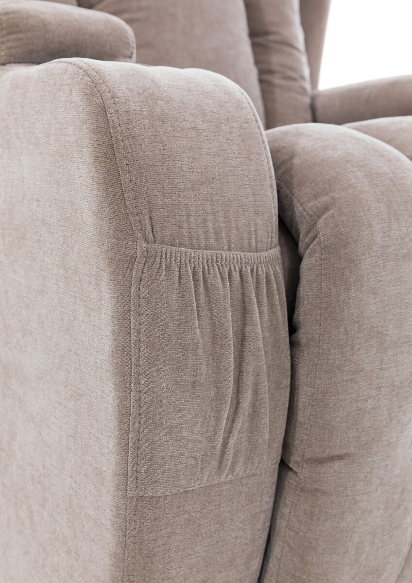 A sötétbézs színű szövetborításnak köszönhetően minden helyiségben kiemelkedő látványt nyújt. Alaphelyzetben klasszikus beltéri fotelként szolgál, ideális pihenésre, tévénézésre vagy könyvolvasásra, míg a pihentető fekvő helyzetben gondoskodik az izomregenerációról és az izmok ellazításáról.