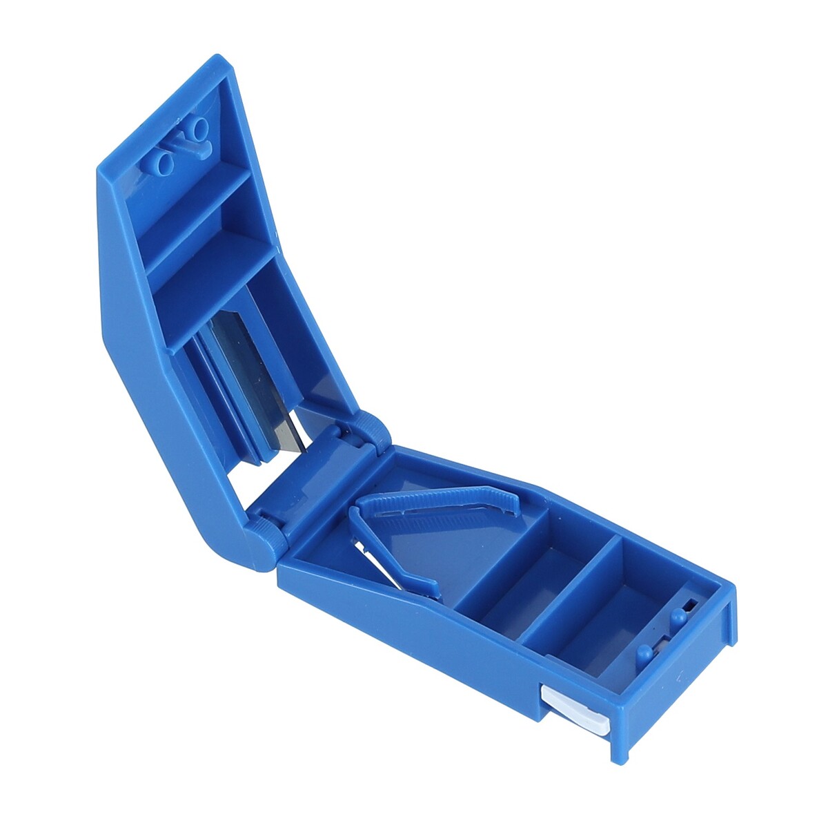 A belsejében egy kis fém vágóél található, amely gondoskodik a tabletta egyenletes elosztásáról. Egyszerűen be kell helyezni a gyógyszert a felezőbe, majd le kell zárni a készüléket, és a kés egyenlő méretű felére osztja a tablettát. Az elválasztónak van egy tárolóhelye, ahol az osztott tablettákat tárolhatja.